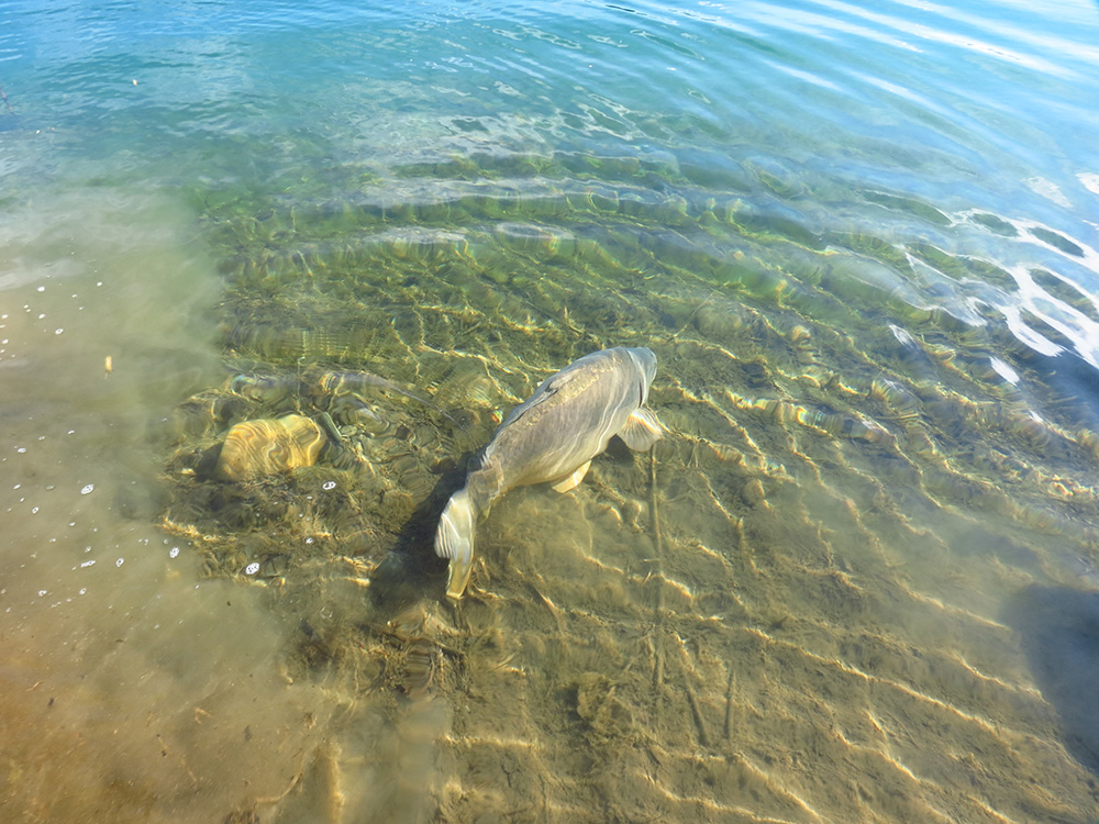 Nasledujúce 2 kapry strácam nakoľko lovím pod kamennými hranami plné mušlí. Je pravdou, že na takéto podmienky som bohužial nebol pripravený a revír som podcenil. Nazval som ho „Malý Cassien“, nakoľko mi podvodnou štruktúrou toto legendárne jazero pripomína.