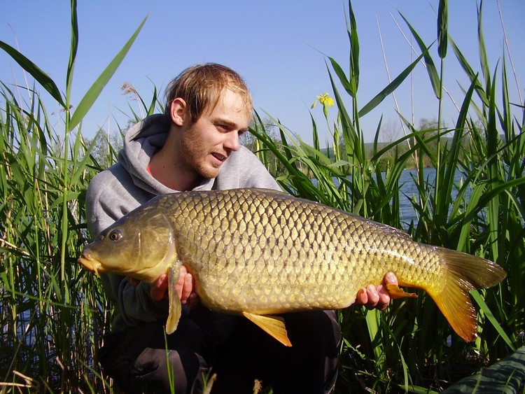 🙂 . Zkusil jsem to hodit blíže ke břehu, kde bylo bahno a spousta napadanýho listí a 18mm pop-up kuličku jsem vyvážil cca 5 cm nade dno.Na PVA k tomu halibut pelety. A hned na první nához kapřík 68 cm, ze kterého doslova proudem teklo mlíčí. Tak jsem ho v rychlosti pustil a říkal si, že by to mohlo začít fungovat. Zároveň jsme přestali i krmit, protože to nemělo cenu a používali jsme pouze PVA. Bráchovi fungovalo i balanced boilies scopex-tygří ořech, na to bylo taky několik kaprů. Nicméně všechny ryby, co jsme nachytali, tak byly jak přes kopírák. Šupináči 65-68cm. Jednoho většího brácha vyříznul a jinak všechno jedna sorta. Zkoušeli jsme snad vše, ale prostě ne a ne chytit větší rybu.Každopádně tam bylo moc pěkně. Potkal jsem se tam taky s Kryštofem Kučerou a na chvilku se tam objevil i Michal, protože přijeli na ryby. Dále bych chtěl tímto pozdravit místní porybné, kteří přišli na kontrolu a po předložení legitimace mě hned poznali