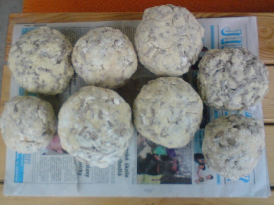 A ještě třeba přidávám sušený mlíko, který to celý pořádně zabetonuje :). Pak to dobře drží i v proudu, nechával jsme to vysušit venku na suchu, až to bylo jako kámen. Vypadá to potom viz. foto: