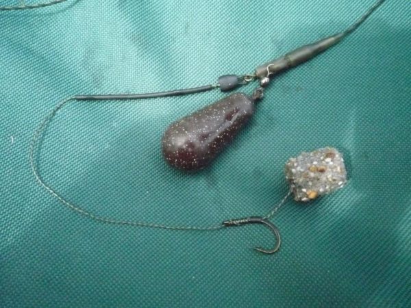Peleta se přes uzlík volně pohybuje, je to obyčejný uzlík od očka na zarážku. Ten vosk jsem taky zkoušel, pelety mi s ním opravdu vydržely dýl ve vodě, ale kvůli pracnosti jsem tuhle variantu zavrhl.