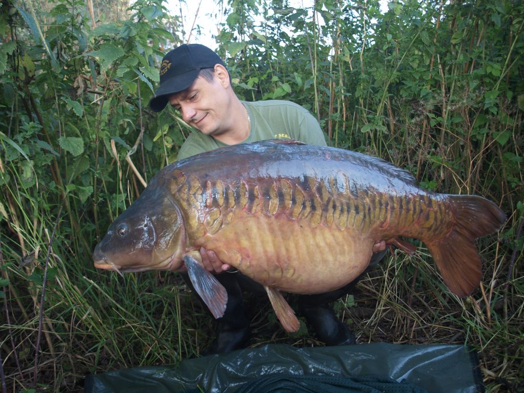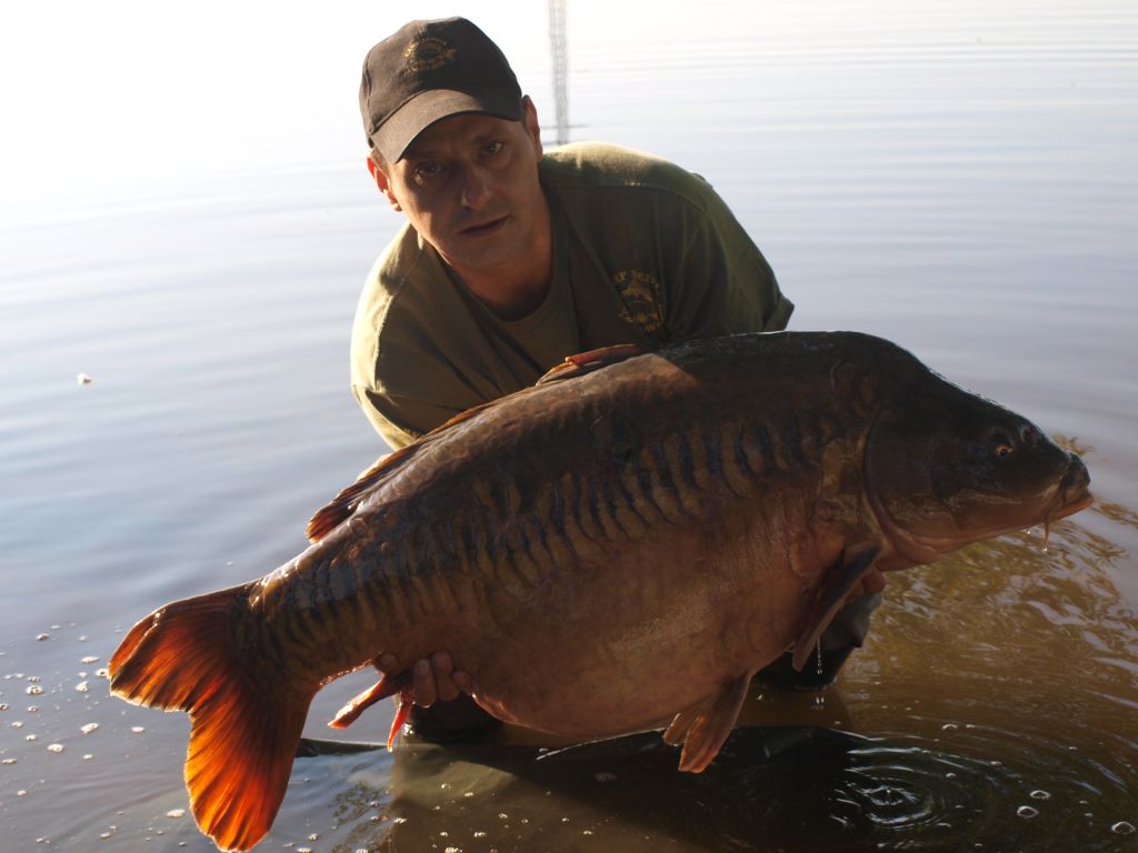 Opětovné ranní přehození a kávička. Píííííííííííííííííííííííííííííííííp, jízda jako od vlaku, sedám do člunu a kapra zdolávám z lodě. Tupý tah, ale jinak nic moc, ryba přestala klást odpor, a tak pár „zapumpování“ prutem a ryba leží u boku člunu. Nemohu uvěřit svým očím. Obrovský kapr leží jako beránek u člunu. Rozklepané mám celé tělo, jenom se modlím, aby vše vydrželo, kdyby tohle krásné monstrum udělalo výpad. V několika vteřinách mám kapra v podběráku.