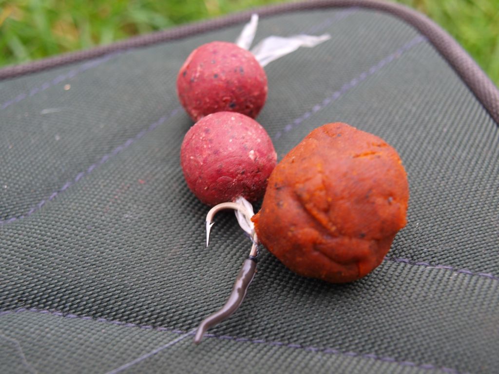 Nové návazce jsou hotové a před náhozem ještě nezbytná zkouška, jak návazec funguje – dlaňový test. Udělal jsem ještě malou změnu v prezentaci nástrahy. Boilie Ocho jsem ještě doplnil o plovoucí 16 mm kuličku s příchutí Mrtvola tzv. na panáčka a na druhou montáž jsem nad kuličku Jater umístnil 16 mm halibut peletu. Vše jsem ještě doplnil o nutnou PVA pásku CARP ZOOM se dvěma kuličkami a vše nahodil. Dokobroval jsem určité množství návnady ke každé montáži a čekal, co se bude dít.