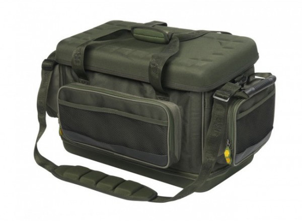 Tato taška byla navržena zejména k použití na vozík, ale ocení ji všichni rybáři, kteří nepoužívají pokaždé vozík, když jdou na ryby. Obrovská kapacita centrální kapsy s vnitřními postranními kapsami, boční a přední kapsy, silná EVA víka pro větší pevnost a ochranu, silné nosné úchyty na obou stranách pro snadnější nakládání a polstrovaný ramenní popruh.