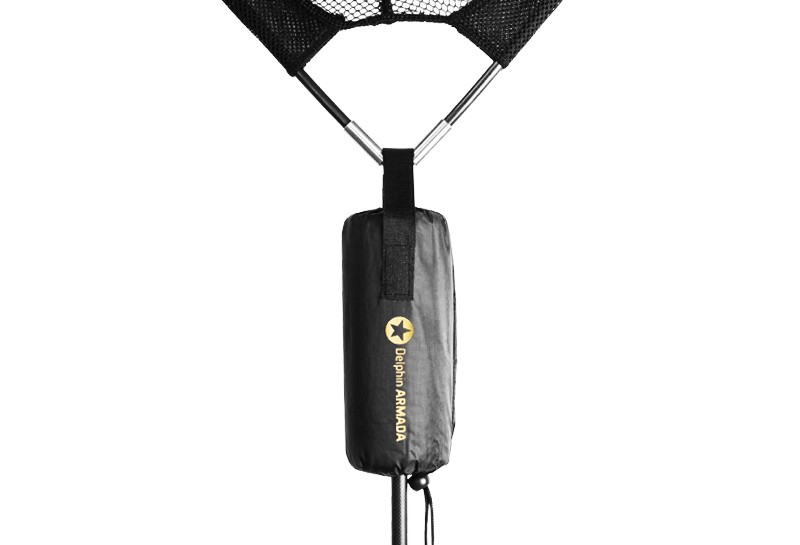 Za špičkovou rukojetí nezaostává ani hlava podběráku. Ramena jsou pevná a v jejich spodní části opět dominuje přesná strojařská práce. Konektory ramen mají totiž sražené hrany pro ještě jednodušší spojení hlavy s rukojetí. Samotná sít má velmi jemnou strukturu (5x5mm) a nehrozí tedy žádné poranění úlovku. Pomyslnou třešničkou jsou zesílené tunely síťky pro ramena. Díky tomu nehrozí prodření síťky ani pro letech používání. Podběrák je zabalený v textilním pouzdře a samozřejmostí je i kvalitní plavák. Delphin ARMADA – vstupte do nového levelu!