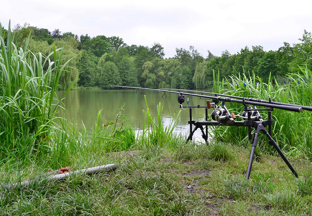 Nakrmil jsem si dvě místa, jedno přímo na hrázi, asi dva metry od břehu. Druhé asi pět metrů od protějšího břehu. Pro místo u hráze jsem si připravil asi půl kila method mixu RobinRed+, přelitý trochou boosteru Spiceman. Přidal jsem do něj tolik vody, aby z něj byla kašovitá hmota. Chtěl jsem, aby drobné částečky pokryly co nejrovnoměrněji větší plochu dna. Proto aby ryby měly potřebu pátrat po zbytcích potravy. Zde jsem poslal Chod Rig. Jako nástrahu jsem použil dipovanou pop-up kuličku obalenou v plovoucí pastě.