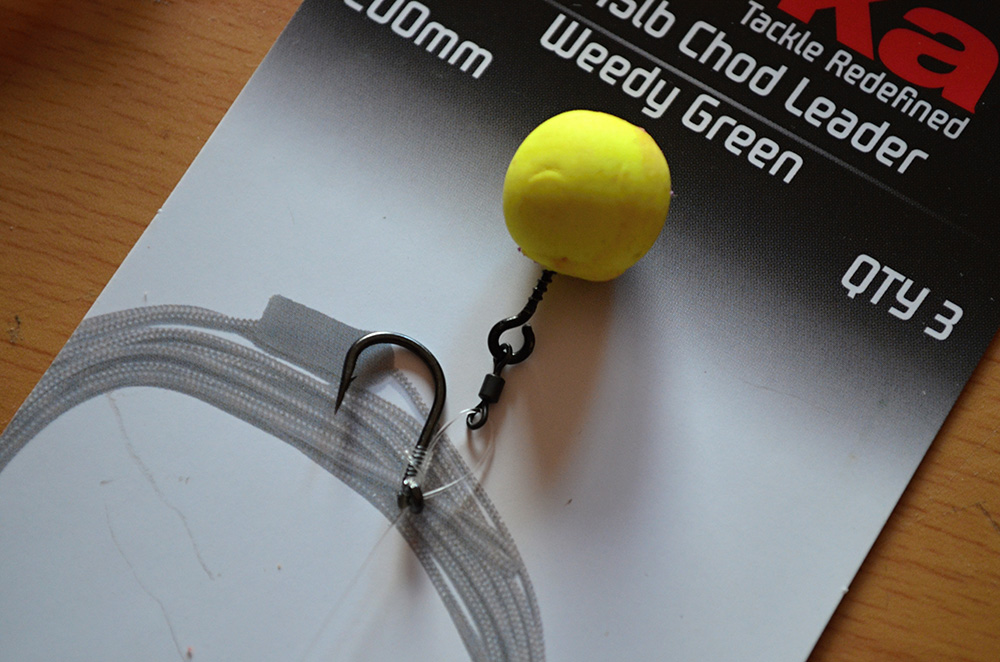 Zabalil jsem si pytlík methodmixu, pytlík eXpresek a můj kyblík s tuningem. Tuning, to jsou v mém případě plovky, dipy, boostery, esence a jiné další vychytávky. Jako lovné místo jsem zvolil nejhlubší partie revíru. Počítal jsem s tím, že ve větší hloubce nebude tak teplá voda. A proto by se tam ryba mohla chovat aktivněji. Vzal jsem si hotový chod návazec s Core Zerem od Tasky, jen abych vyzkoušel, jak se tahle montáž osvědčí na místní vodě. Ještě jsem zde Chod nezkoušel, ale věřím, že v tomto počasí to bude dobrá volba.