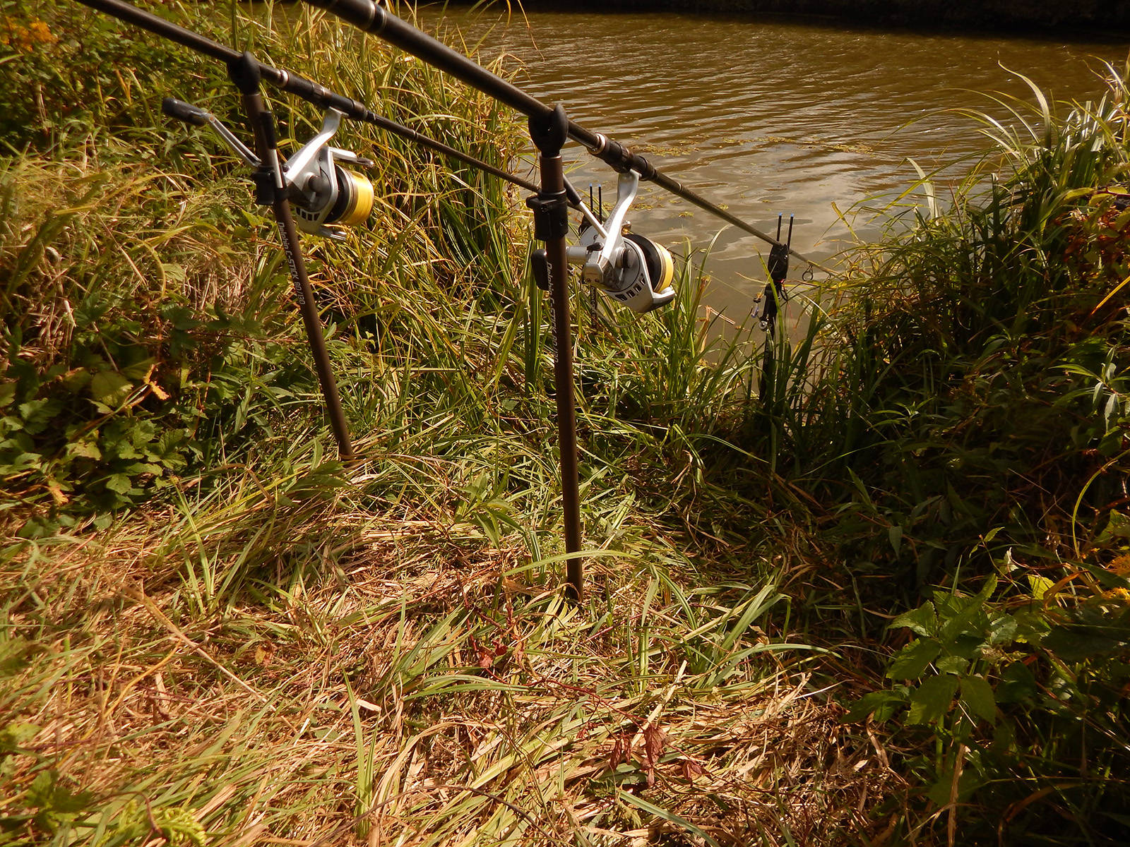 Po tom rituálnom procese sa púšťame do rozbaľovania všetkého potrebného. Slniečko nám krásne hreje a teplota sa tvári priateľsky. Rieka je úzka a aby som nehádzal na druhu stranu na stromy, beriem si malé olovko a nahadzujem pod druhy breh. Následné zaklipujem vlasec na cievke a zaznačím fixkou. Vyťahujem na breh, vymieňam olovko za olovo. Pripájam nadväzec a PVA punčošku, hodím na rovnaké miesto. To urobím aj na druhom prúte. Za bivakom si zapichnem dve tyčky, na ktoré si budem nameriavať dĺžku vlasca až po značku fixkou, následne zaklipujem, stočím späť a viem, že stále hodím na stejne miesto.