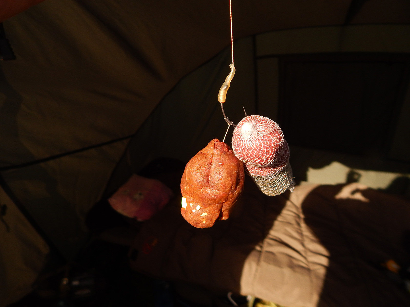 Nameriam si vzdialenosť, zaklipujem a nahodím spať. Prakom dokrmujem boilies a veľké pelety. Zaliezam do bivaka, zazipsujem sa do spacáka a potichučky ležím. V okolitých krikoch je počuť pohyb zveri. Užívam si tu atmosféru a spokojný usínam.