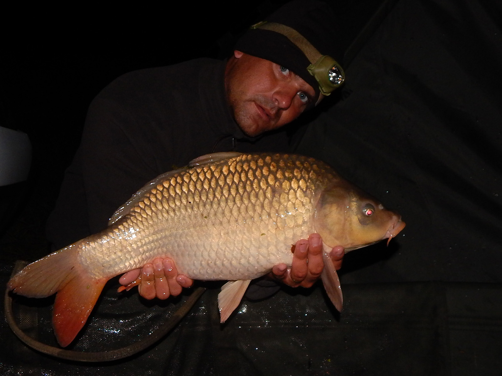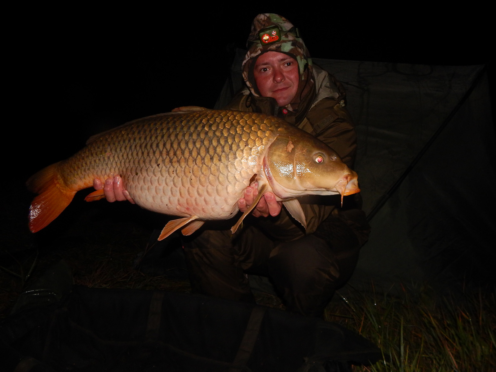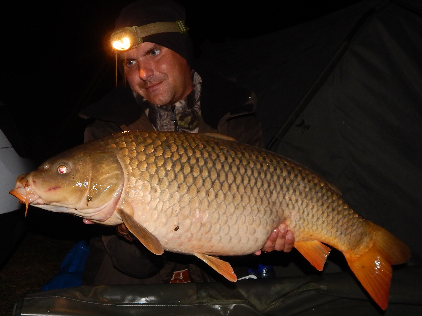 Po obede prehadzujem obe palice a rozhodujem sa ich nechať až do záberu, alebo do ďalšieho dňa. Večer ma konečne záber aj Laci, síce malého kapríka, ale potešil. Dohadujeme sa, že od zotmenia budeme každý vo svojom bivaku, aby bolo maximálne ticho. O druhej nad ranom ma prichádza zobudiť Laci, že ma menšieho kapra či ho neodfotím. Vyliezam s vyhriateho spacáka a idem k nemu. Vo vaničke ma nie kapríka, ale tela… Nádherné torpédo o váhe 9,5kg. Jeho osobný rekord zapíjame aj niečim hriatym.