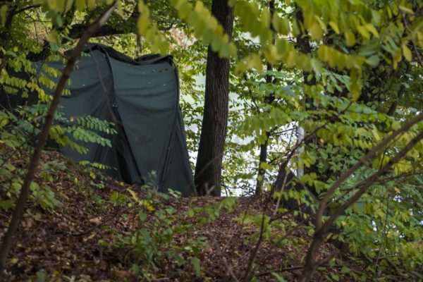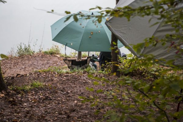V noci začíná pršet a to je naprosto ideální situace k stěhování se na vysněné místo. Není lepšího zážitku, než si v dešti sbalit vigvam, naházet vše do lodi poznamenané dvoudenním rybolovem v marastu a stěhovat vše na protější břeh, kde je vše ještě útrpnější. Vidina krásného úlovku však veškeré tyto nesnáze v okamžiku smaže. Jistě to znáte také. Přirazil jsem na skalnatý výběžek, kde byly vykopány do strmého svahu zářezy, co mají imitovat schody a na konci nich vydlabaná nicotná plošina pro deštník. S trochou důvtipu se sem může vejít i broličko. Jenže v tom dešti je vše tak uklouzané, že mé stavění nového tábora se změnilo spíše v artistický výkon v provedení krasobruslaře na ledopádu.