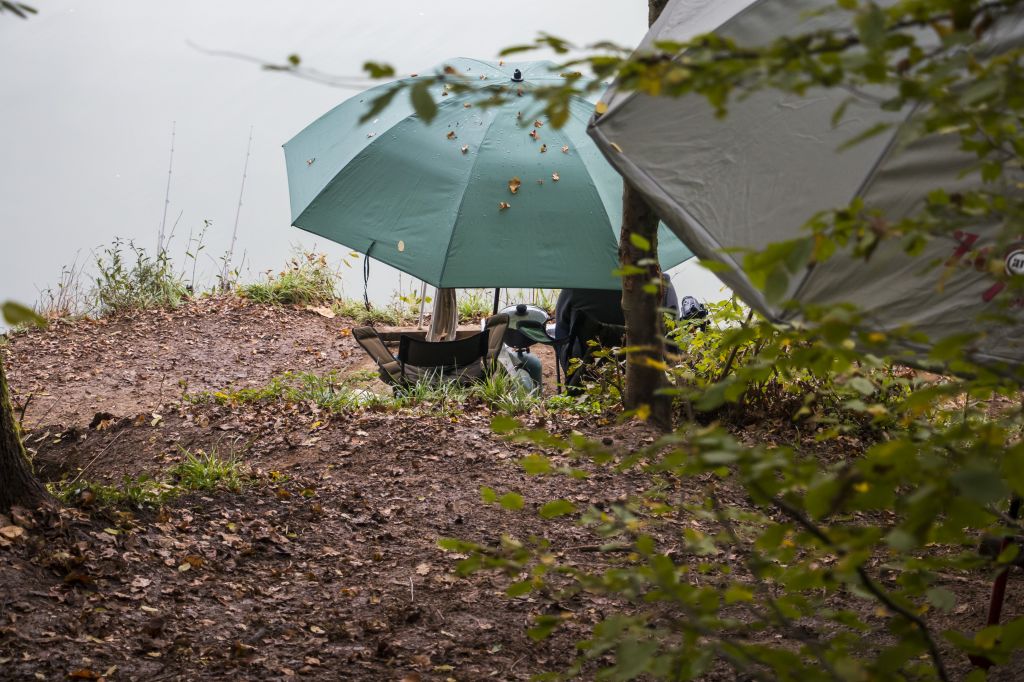 Nyní jsem již ukotven v místech, které slibuje úspěšnější rybolov. Kapři se stále vyhazují v prostoru jako předešlé dny a já jsem již v jejich dosahu. Ale stále prší… Z mých návazců už zmizely dvě dvacet čtyřky a postupně jsem se propracoval na jednu dvacítku. Holt se někdy skutečnost značně odlišuje od informací, co získáte od kolegů „předvojářů“.