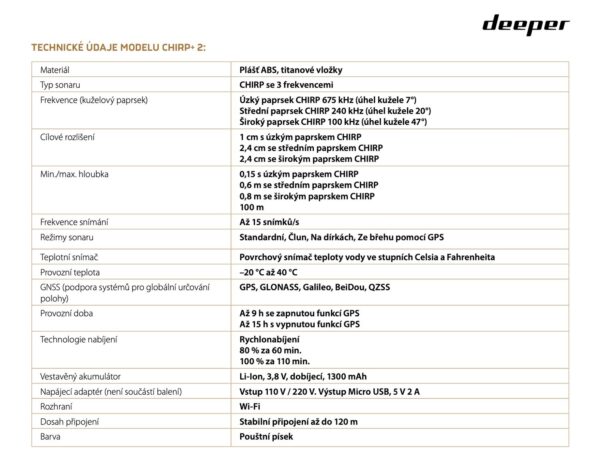 Výkonný nahazovací sonar CHIRP s vyspělou technologií, třemi frekvencemi paprsku, jasným obrazem a extrémní přesností. Ideální k rychlému nalezení míst, kde se zdržují lovené druhy ryb, k vyhledání dravců a k rybaření v extrémních hloubkách. V kombinaci s inovativním softwarem, aplikací Fish DeeperTM a webovou platformou si snadno naplánujete svůj rybářský výlet. Určeno k dokonalému požitku z chytání ryb.