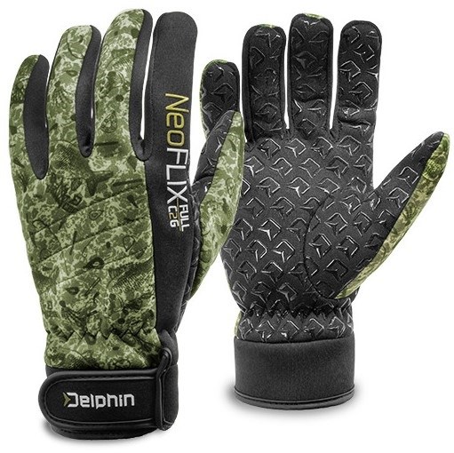 Oproti standardním neoprenovým rukavicím jsme přidali dovnitř fleecovou vložku, což posouvá level komfortu při zimním rybaření na novou úroveň. Velkou výhodou je také protiskluzová plocha na dlani, která je opatřena pogumovanou vrstvou s logy značky Delphin.