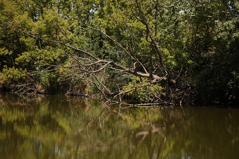 Věci již mám skoro suché a do plánovaného odjezdu zbývá tak půl hodiny. Poslední anebo spíše jediný prut už leží ve vodě spíš jen ze zvyku. Postupně očišťuji bivak, který je tak do půl metru od země komplet od bláta ze včerejšího slejváku. Všude zpívají ptáci a bzučí hmyz, krásný teplý den plný barev a života, jak to po dešti bývá. Najednou tuto dokonalou idylku protne šílený rachot a velmi silná rána o vodní hladinu. Otočím se v rychlosti, co se děje, a nevěřím svým očím. Strom, pod kterým jsem celou dobu lovil a hot spot, který tak dokonale fungoval, zmizel. Strom nevydržel a spadl úplně celý do vody, samozřejmě přímo na zmiňované místo. Místo, které bylo tak navštěvované rybami, místo, které bylo tak produktivní, místo, které bylo z nějakého důvodu jiné. Podle úhlu vlasce šlo zřejmě o malou díru přímo pod větvemi tohoto kmenu. Myslím, že tímto je místo uzavřeno. Ve větvích, jak jsou nyní, již nelze lovit.
