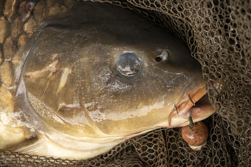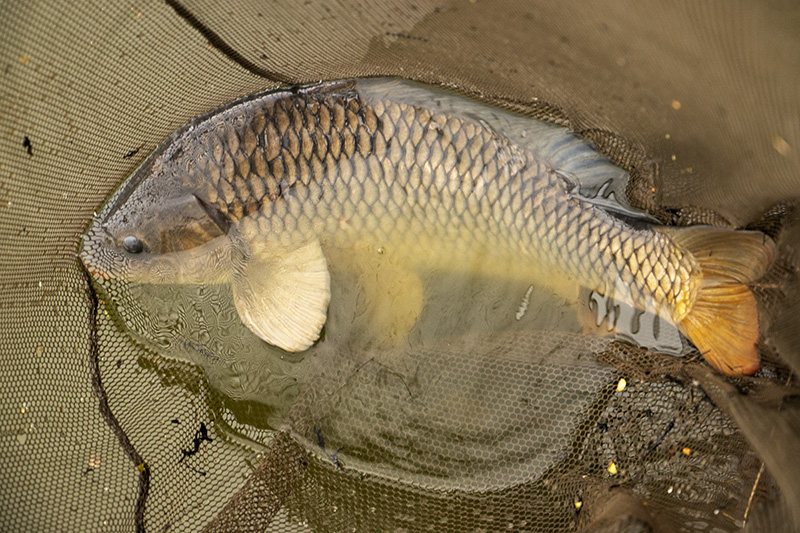 Beru prut do ruky a vím, že mám problém. Montáží nejde pohnout z místa. Zkouším se několikrát opřít do prutu a najednou se druhý konec uvolňuje. Opět jsem si musel oddychnout, jenže ještě není vyhráno. Cítím, že jsem nejspíš zahákl zlomenou větev a ta mi činí nemalý odpor. Zkouším tedy několikrát více potáhnout, jestli ji neshodím. Jenže větev místo toho, aby spadla, mi najednou jede přímo do strany. Chvilku přemýšlím, jestli jsem blázen nebo jestli to je nějaký divný špalek, který díky směru tahu a odporu vody jen jede cestou nejmenšího odporu. O vteřinu později již mám jasno a nevěřím. Na konci je kapr a je překvapený stejně jako já. Absolutně nechápu, jak se to stalo. Je možné, že přesně v moment záběru na něj spadl strom a uvěznil ho? Anebo zabral zrovna ve stejný okamžik, kdy jsem zvedal prut, nebo se píchl a pouze zůstal stát na místě a čekal co bude? To už se zřejmě nikdy nedozvím, ale závěr je to neskutečný. Někdo mi toto vše vyprávět, tak mu uvěřím tak půlku a myslím si své.