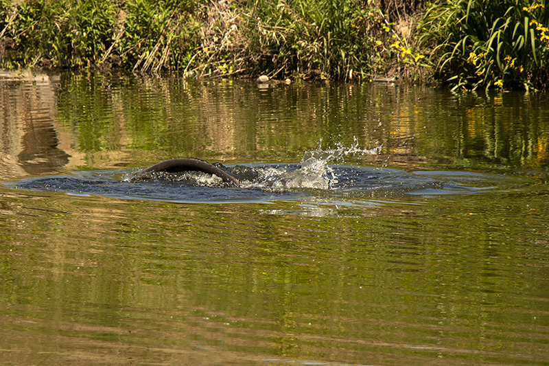 Nakonec zkouším něco jiného a rozkrmuji flek naproti pod břehem zhruba kilem tygřáku. Zkusím štěstí na Chod, i kdyby se teď kapři nekrmili, zvědavost je jejich nepřítel. Stačí, když pojedou kolem. Při čekání na záběr jsem konečně mohl dopsat článek z předchozí výpravy a začít psát tento. Volná chvilka přišla vhod. Mezičas si vyplňuji fotografováním okolní přírody. Prostě super relaxační den. Zrovna si tak sedím a pozoruji vodu, když najednou slyším vyvádějící ryby blíž a blíž. Postupně se k nám blíží zpoza rohu. Když už jsou úplně před námi, tak odhalujeme pravdu o kaprech ve tření.