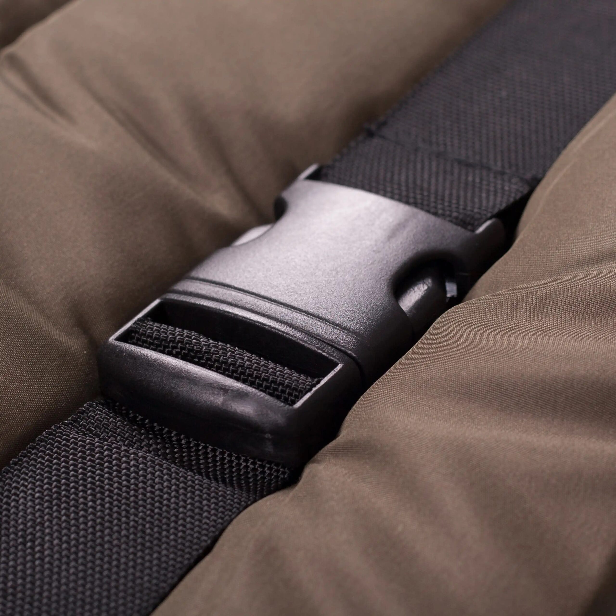 Ve střední části spacího pytle je popruh, který se díky přezce snadno upevní k lehátku a zabrání padání a kroucení spacího pytle. Spací pytel je dodáván s přenosnou a zesílenou kompresní taškou.