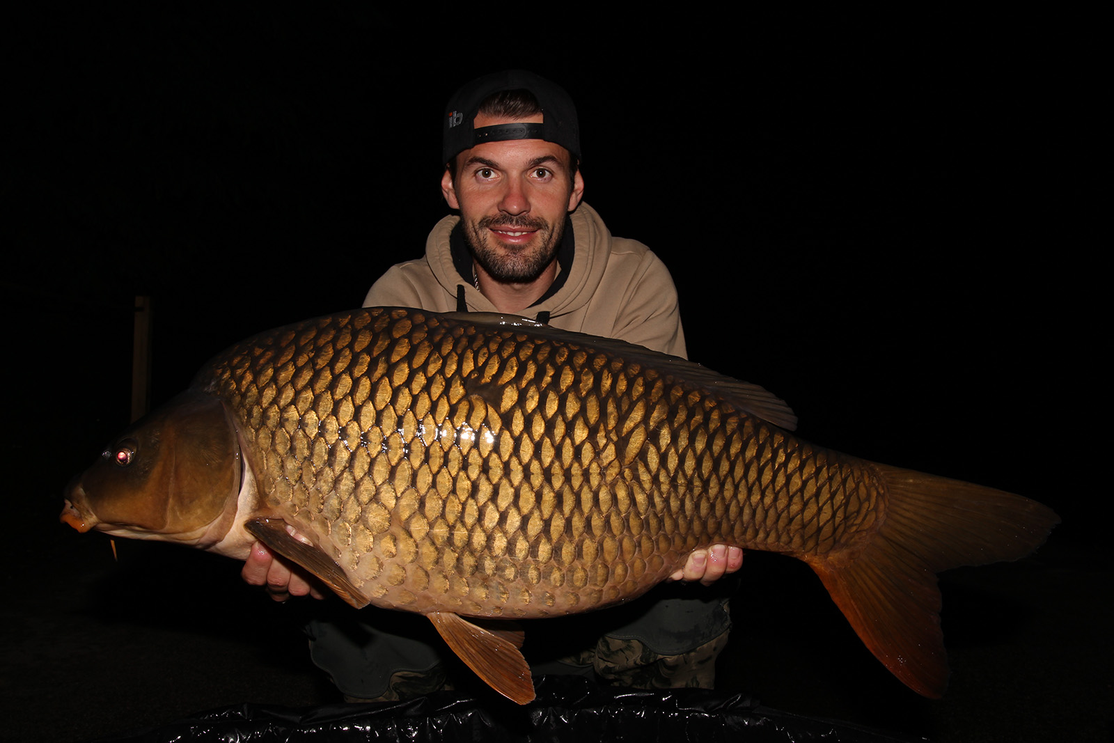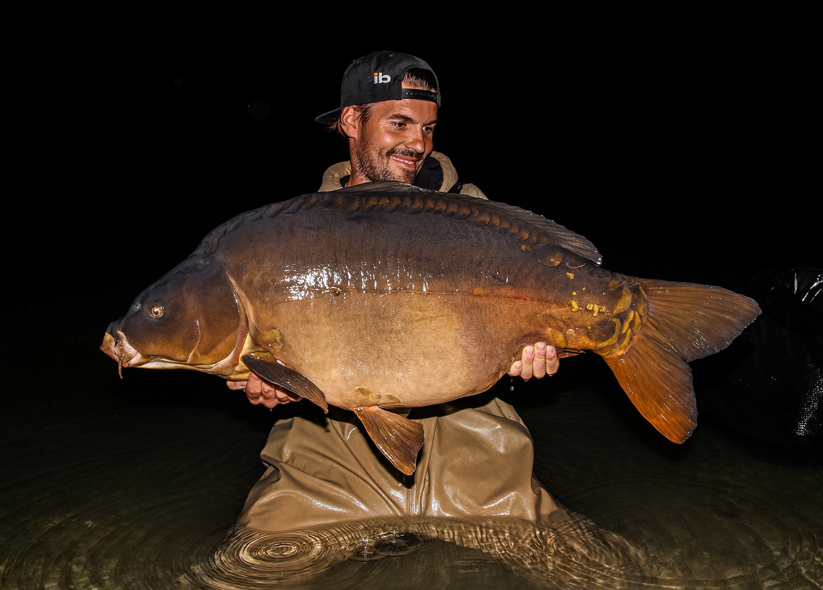 Rychle se nasoukám do prsaček a s prutem nad hlavou následuji kapra do hlubin. Po dvaceti minutách urputného souboje už mi začíná být v chladné vodě zima, ale nevzdávám se. Konečně vidím ve světle čelovky, jak se kapr přede mnou převalil a ukázal nám to obří kormidlo. Teď už je jasné, že je to ten „pan kapr“, pro kterého tohle šílenství děláme. Za dalších deset minut, už mu konečně docházejí síly a pomalu ho navádím do podběráku. Je tam, yessssss!!! Nádherný tmavý lysec o váze 23kg! Co víc si od posledního večera přát. Jsem vyčerpaný, ale šťastný! O tomhle jsem snil a teď je to tady. Musím ale poděkovat kamarádovi Zdeňkovi, celou výpravu jsme chytali vedle sebe a on, i když nebyl tak úspěšný jako já, pokaždé ochotně asistoval u každé mojí chycené ryby. Vždy s úsměvem poblahopřál a těšil se společně se mnou z každého záběru. To už se dnes bohužel moc nenosí a za to mu patří velký dík!