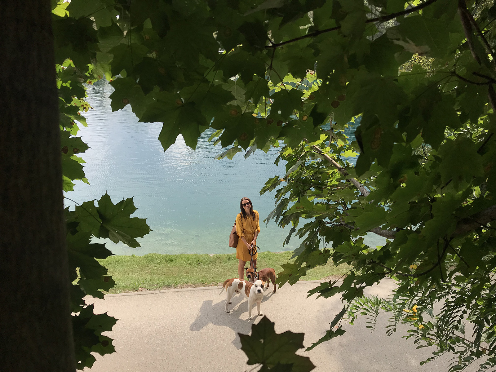 Fascinuje mě, jak naši pejsci nikomu nevadí, naopak si je každý chce hladit a s úsměvem na ně pomlaskává. To jsme v Chorvatsku nezažili ani jednou. Je to k zamyšlení, dvě země, které spolu sousedí, téměř stejná řeč, ale úplně rozdílná mentalita. Další důležitou věcí je, že ve Slovinsku se dá bez problémů platit Eurem! To v Chorvatsku si za Eura nekoupíte ani rohlík. Začínám se do tohoto místa čím dál tím víc zamilovávat.