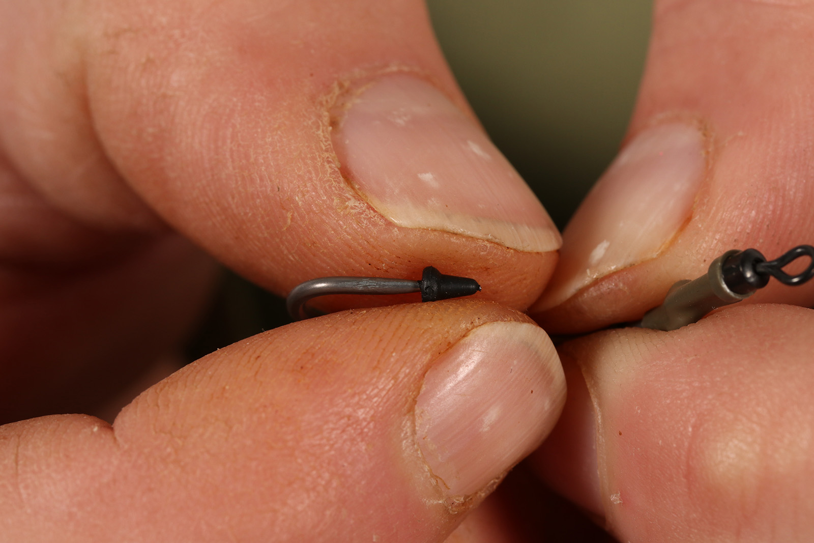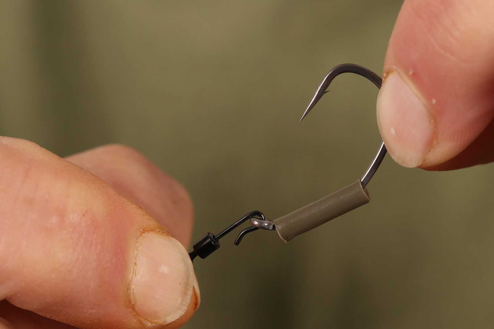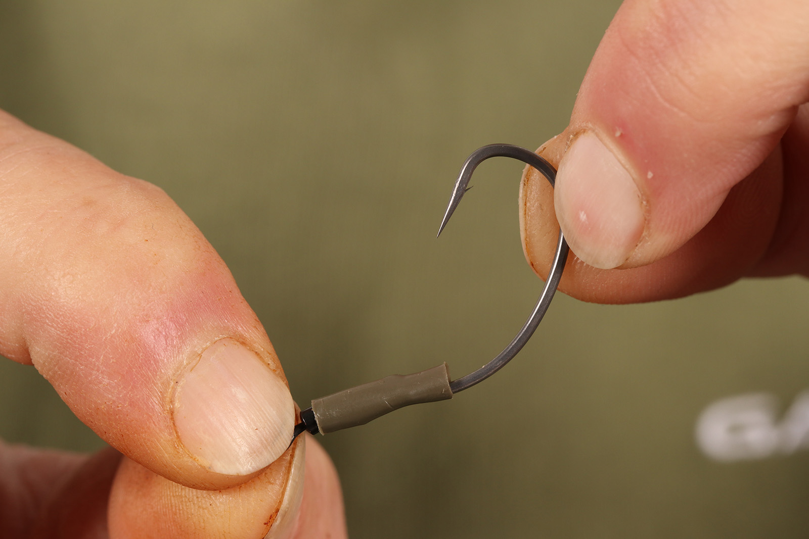 1. Vezmeme háčky Rigga CVR velikost č.42. Nyní ustřihneme asi 12mm ze smršťovací hadičky Large Covert Shrink Tube3. A nasuneme na háček, jak je vidět na obrázku4. Poté vezmeme obratlík Target Kwik Low Swivel velikost č.12 a připevníme ho k očku háčku tak, jak je demonstrováno na obrázku5. A smršťovací hadičku přetáhneme přes část obratlíku a očka háčku6. Za použití zapalovače jemně nahřejeme smršťovací hadičku7. A na háček navlíkneme obratlík8. Nyní použijeme zarážku Covert Hook Stop a navlíkneme ji na háček9. Zarážku stáhneme až do úrovně háčku, kde bude oproti hrotu háčku10. A nyní navážeme půlku pop up boilie a půlku klasického boilie a zapalovačem zatáhneme konečky Bait Flossu11. Hotovo, Turbo German návazec je hotov12. Hotový návazec podruhé