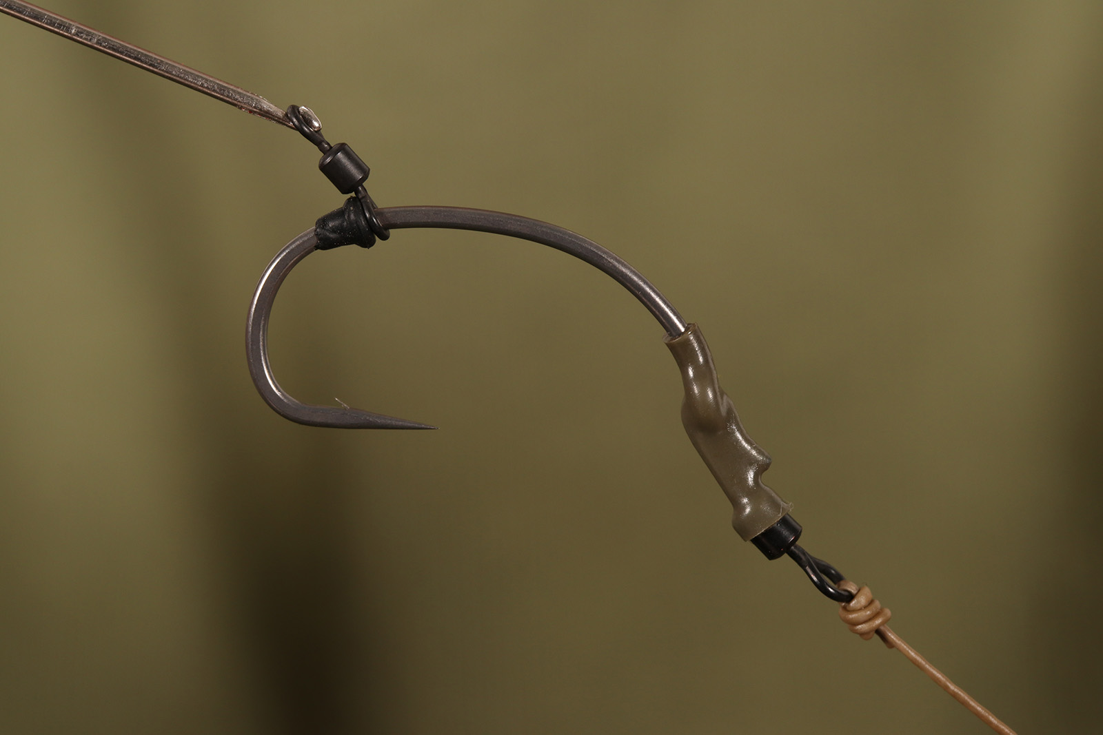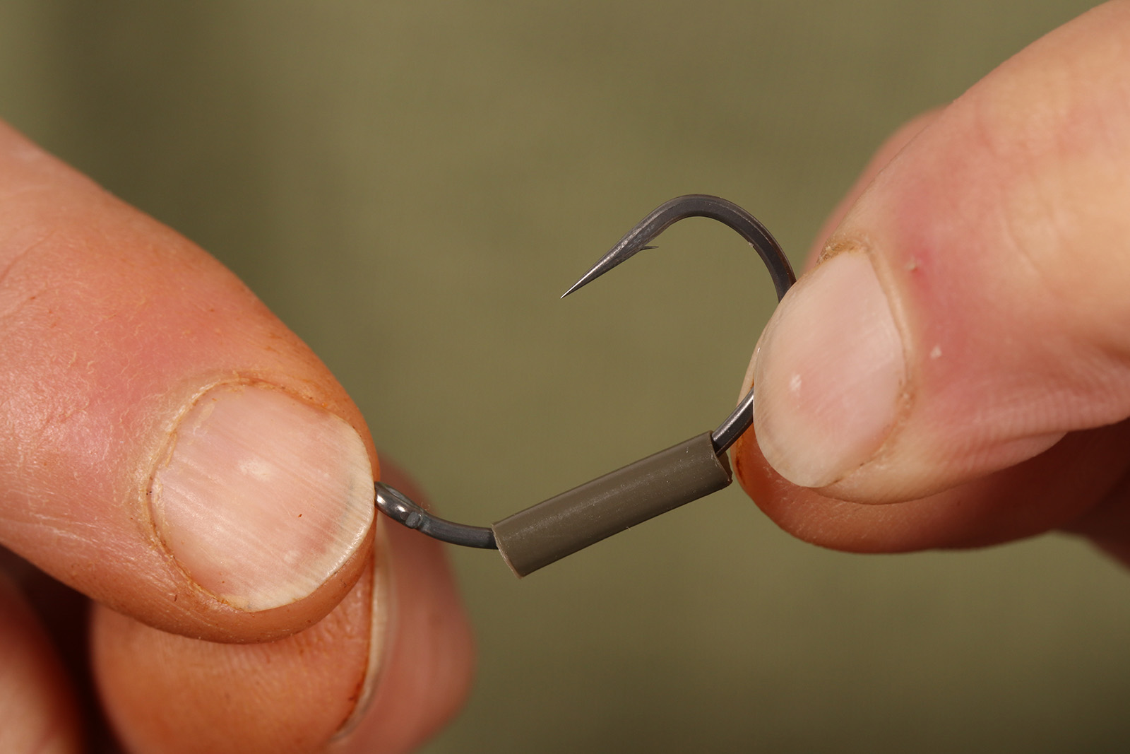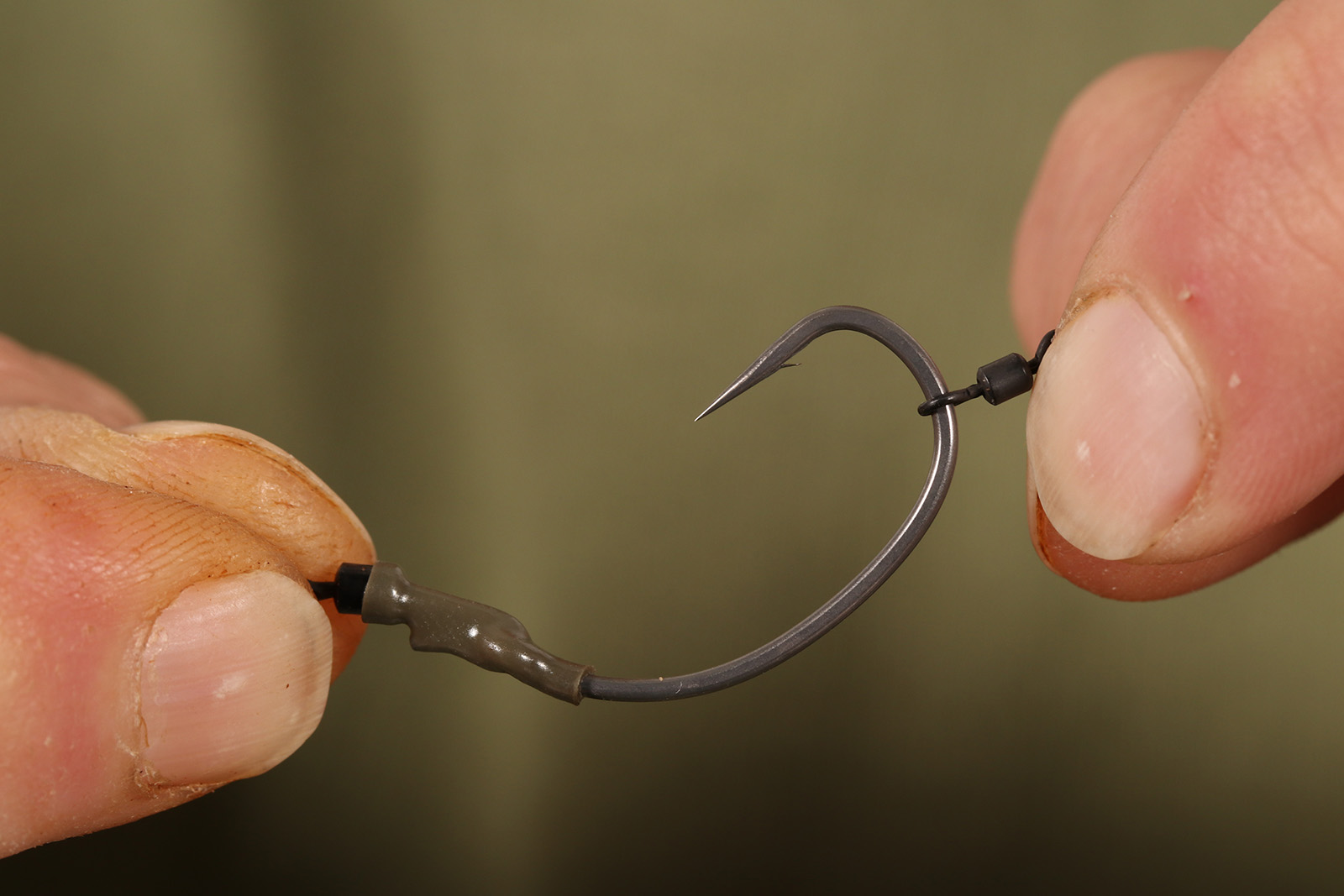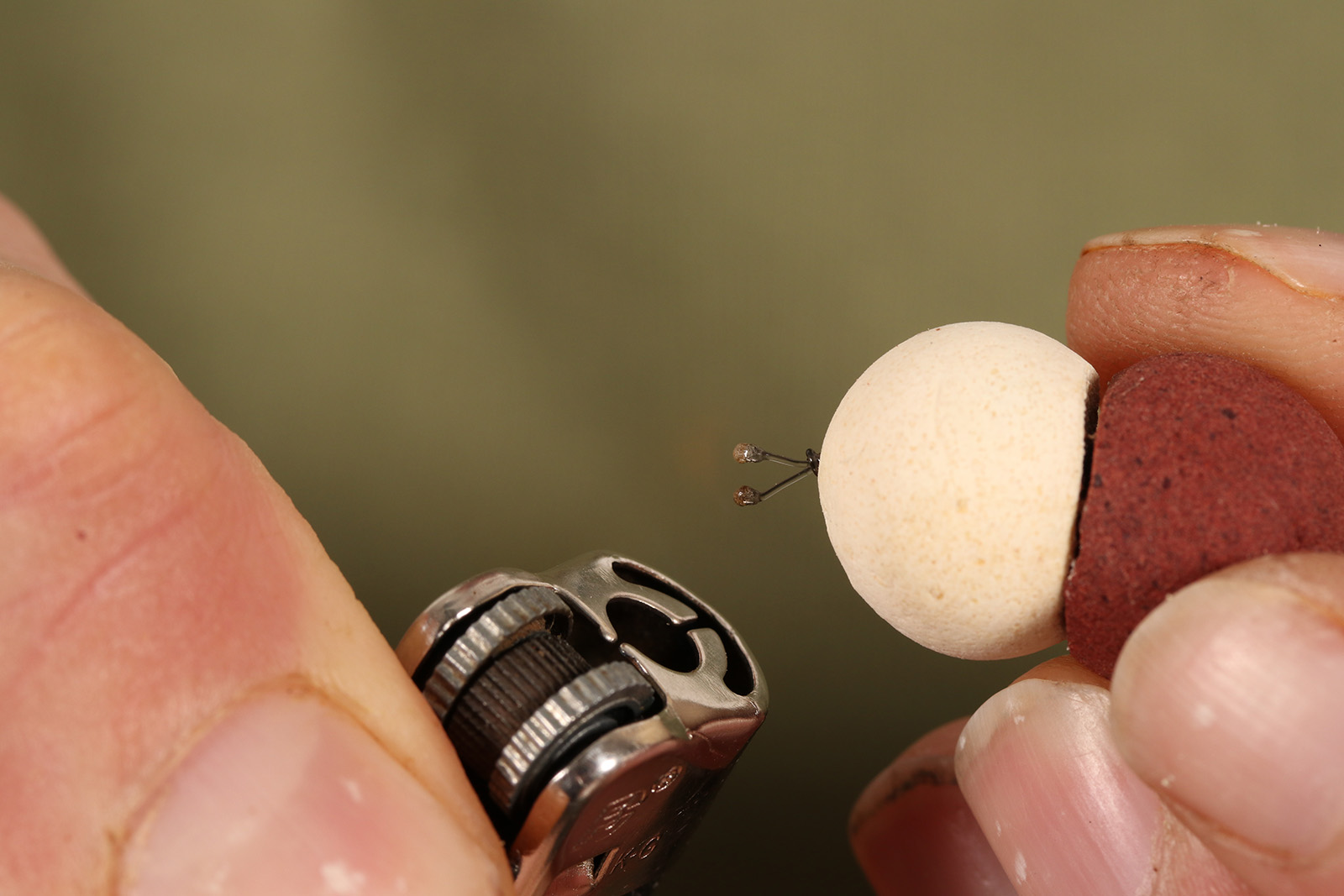 1. Vezmeme háčky Rigga CVR velikost č.42. Nyní ustřihneme asi 12mm ze smršťovací hadičky Large Covert Shrink Tube3. A nasuneme na háček, jak je vidět na obrázku4. Poté vezmeme obratlík Target Kwik Low Swivel velikost č.12 a připevníme ho k očku háčku tak, jak je demonstrováno na obrázku5. A smršťovací hadičku přetáhneme přes část obratlíku a očka háčku6. Za použití zapalovače jemně nahřejeme smršťovací hadičku7. A na háček navlíkneme obratlík8. Nyní použijeme zarážku Covert Hook Stop a navlíkneme ji na háček9. Zarážku stáhneme až do úrovně háčku, kde bude oproti hrotu háčku10. A nyní navážeme půlku pop up boilie a půlku klasického boilie a zapalovačem zatáhneme konečky Bait Flossu11. Hotovo, Turbo German návazec je hotov12. Hotový návazec podruhé