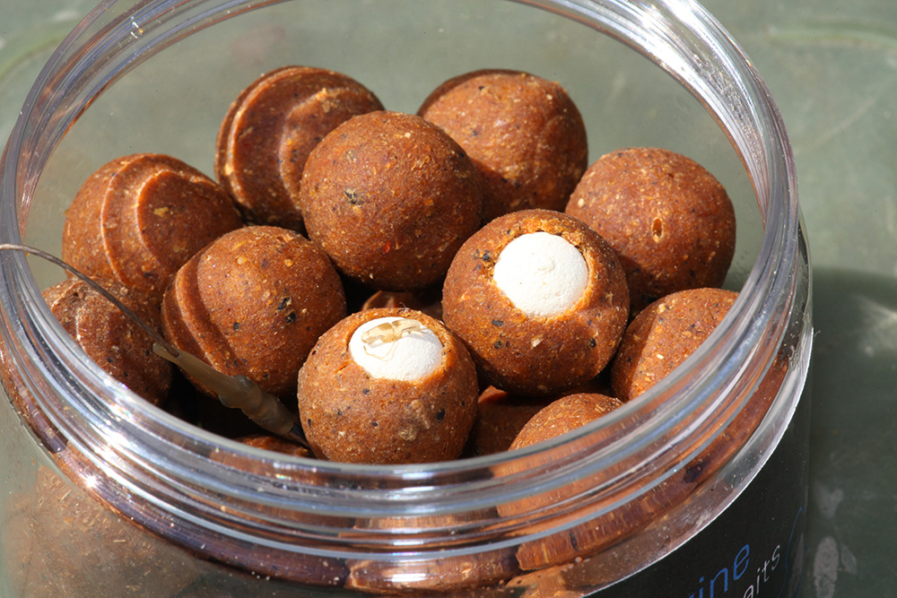 K vytvoření opravdu dokonale vyvážené nástrahy je třeba odvrtat tři čtvrtiny z jádra kuličky boilies a do dutiny vložit plovoucí kuličku. Každé boilies se chová jinak, ale s trochou domácí přípravy si vysledujete přesný poměr ke vzniku pomalu potápivé nástrahy. Jedním z extra opatření proti zauzlování je vložit rozpustné nugety do PVA síťky a to celé pověsit na háček.