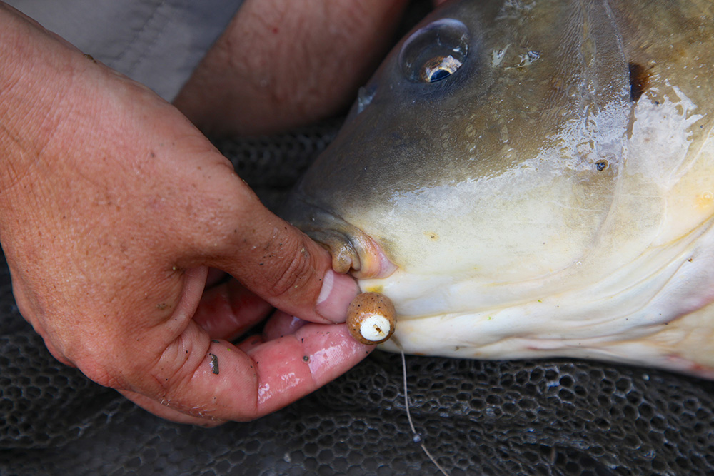 Velikost háčku obyčejně závisí na nástraze, ale pro 15mm Royal Marine boilies jsem používal při této příležitosti velikost č. 7 ESP Gripper se zahnutým hrotem, což se ukázalo jako perfektní. Vlas navázaný bezuzlovým vázáním byl dost dlouhý na to, aby vznikla malá mezera mezi ohybem háčku a nástrahou. Ve skutečnosti je všechno velmi jednoduché, jen se trochu více zaměřit na nástrahu – to přináší ovoce.
