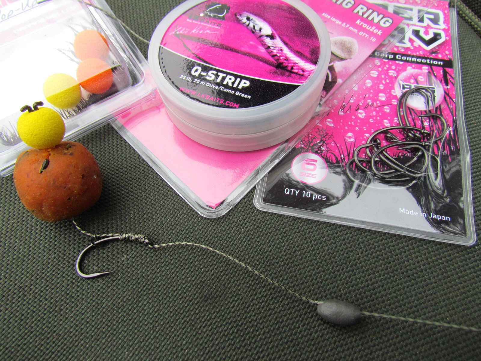 Z uvedených základných komponentov zostavujem jeden typ nadväzca za použitia krúžku na ramienku háčika a druhý typ nadväzca s vlasovým rovnátkom. V oboch prípadoch sa mi osvedčila vzdialenosť nástrahy od dolného oblúčika háčika o veľkosti 1 cm. Na každý nadväzec zároveň dávam približne 3 cm – 5 cm za háčik plastické olovo pre ideálne otočenia sa celej zostavy pri nasatí kaprom.