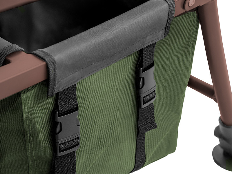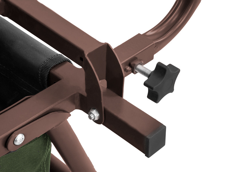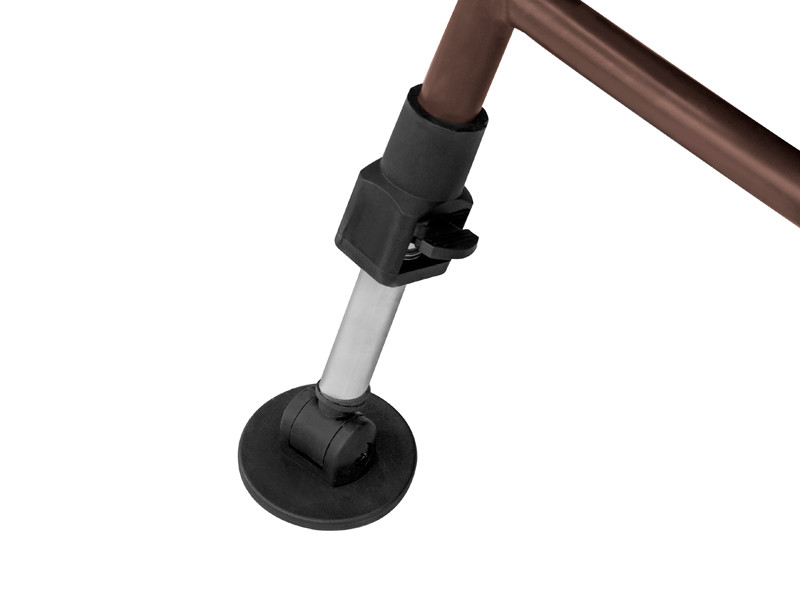 Nespornou výhodou jsou také opěrné nohy se zajišťovacím pinem, kterými disponuje. Díky nim vozík vždy stabilně stojí na svém místě. Nohy jsou navíc vysouvatelné a osazeny patkami a je tak možné se přizpůsobit terénu a zamezit možnému převrácení vozíku.