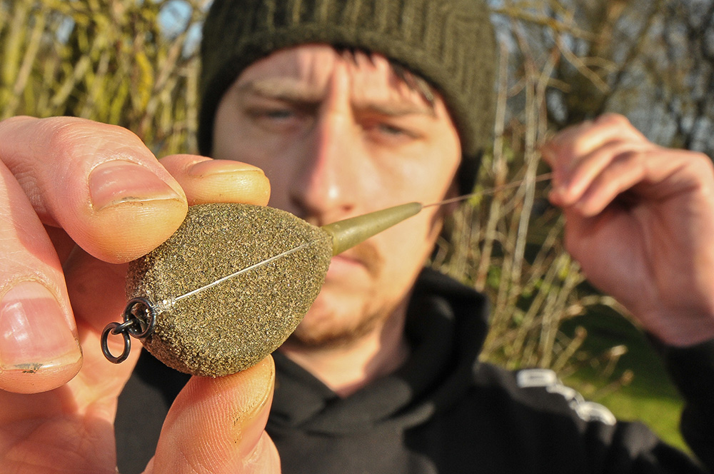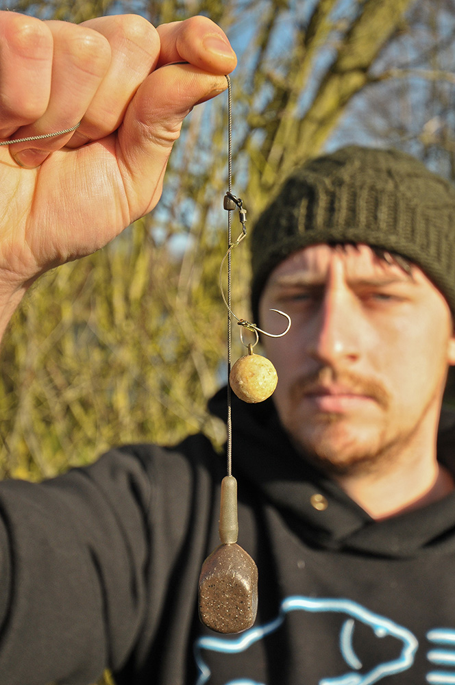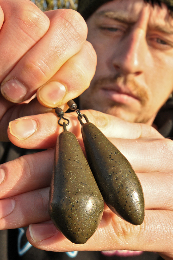 Je to jistý a smrtící způsob, jak ulovit kapra. Když lovím s touto sestavou na hraně, používám to největší olovo, jaké mohu, určitě alespoň 115g, protože to pomáhá počátečnímu píchnutí kapra a odpadává s větší lehkostí. Pro lov s PVA sáčky a pro lov při okrajích jsou moje montáže kratší, neboť váha olova se projeví rychleji. Olovo je totiž montáži mnohem blíže. Existují i olova s texturou. Ta splynou se svým okolím daleko lépe a je mnohem těžší je odhalit. Při lovu na vodách se silným tlakem to může být velmi důležité.