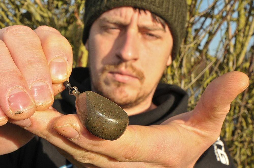 Maximální využití času je tedy nezbytné. Nemám čas na to, abych obcházel velké pískovny s markerem a zkoumal jednotlivé rysy dna. K tomu, abych zjistil, kde potřebuji být, používám pouze oči. Jakmile najdu několik ryb, s použitím zátěže ve tvaru hranaté hrušky jsem schopen poznat, kam až mohu nahodit. Plocha spodní části zátěže je větší než u jiných olov, a to mi velmi vyhovuje.